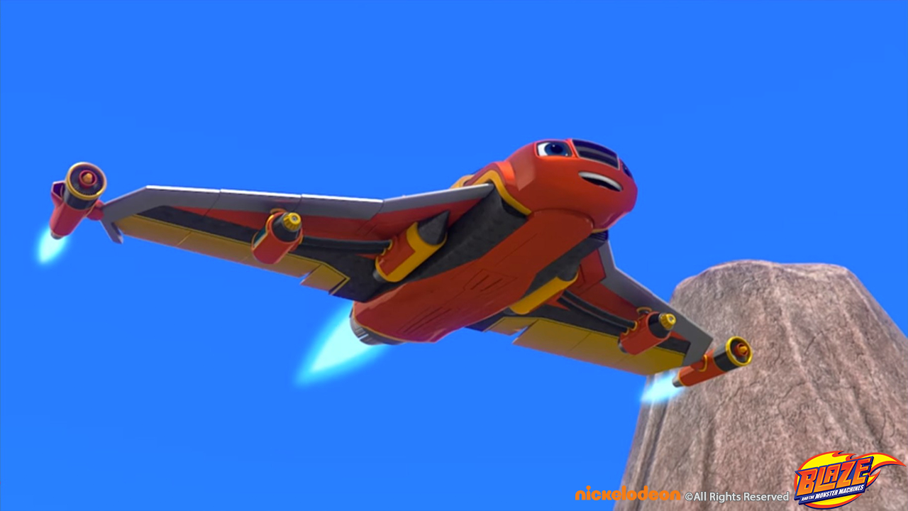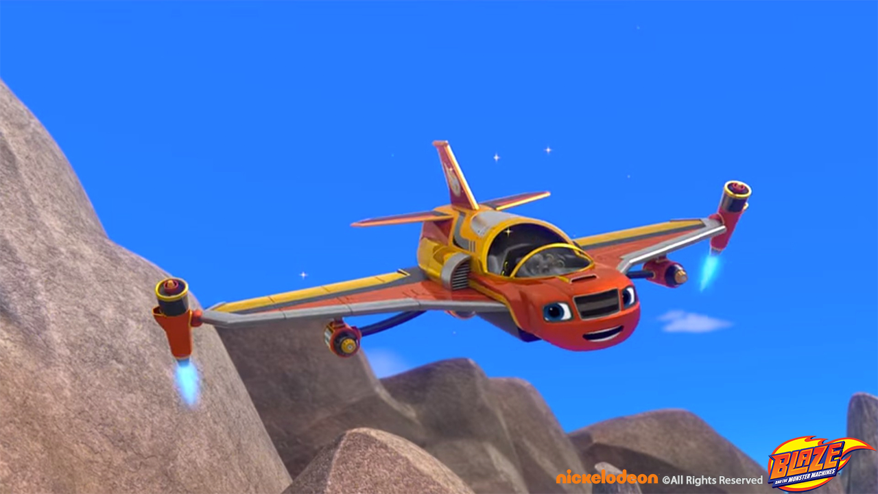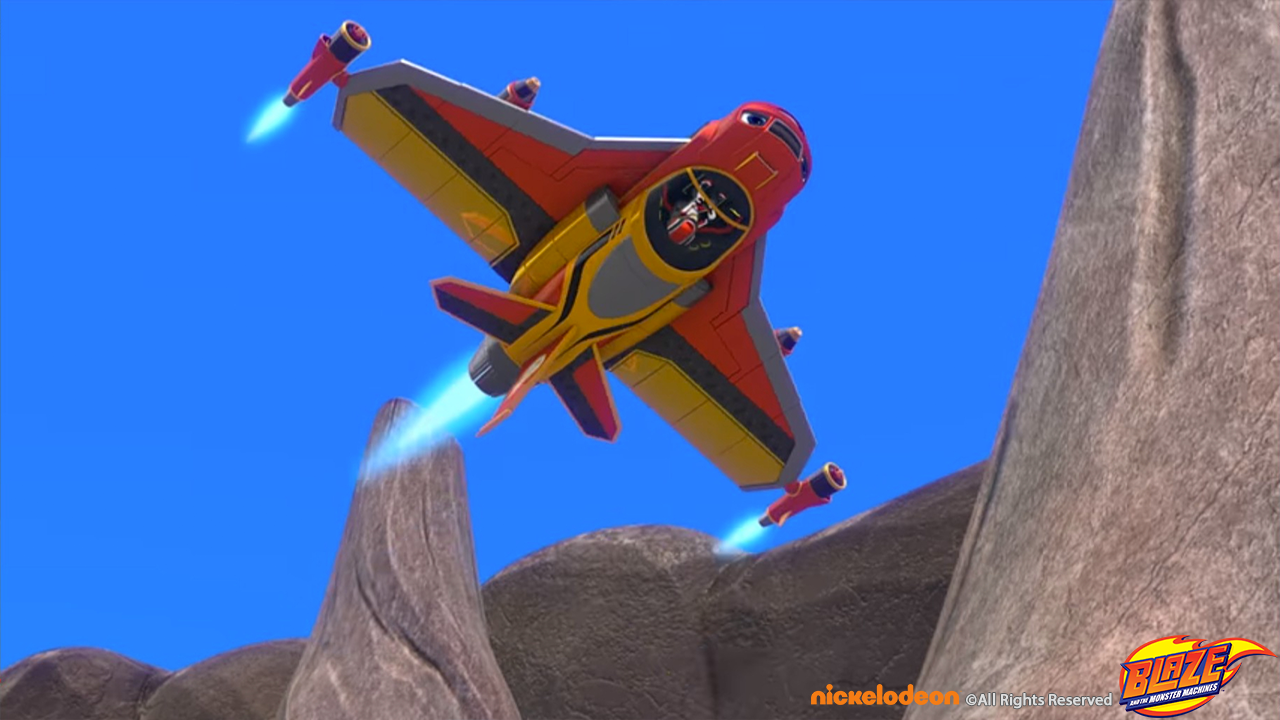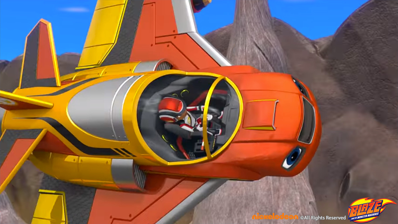 Blaze transformed to a water blaster jet to pass a volcano set and winning the race around the world sequence.