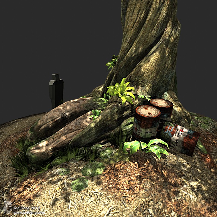 All texture maps included color, normal and specular maps are not larger than 512x512 as they requested. This scene is used for a console game environment.